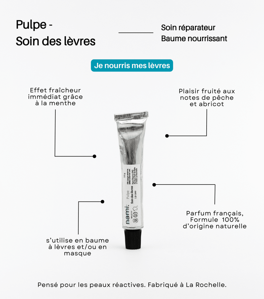 Notre soin des lèvres peut s’utiliser quotidiennement comme baume à lèvres (1) ou en masque réparateur (2).